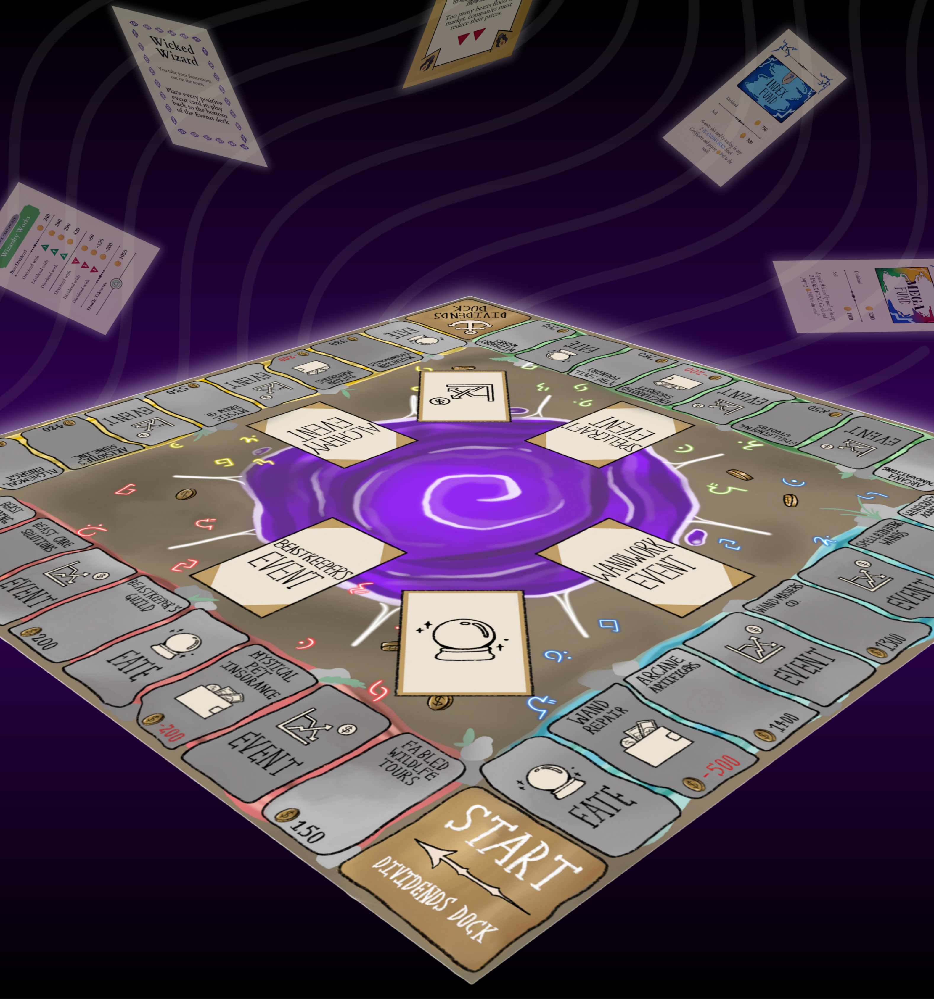 Wealth Wizards is an award-winning board game designed to teach players essential financial skills, such as stock trading, budgeting, and debt management, through an engaging and interactive gameplay experience.